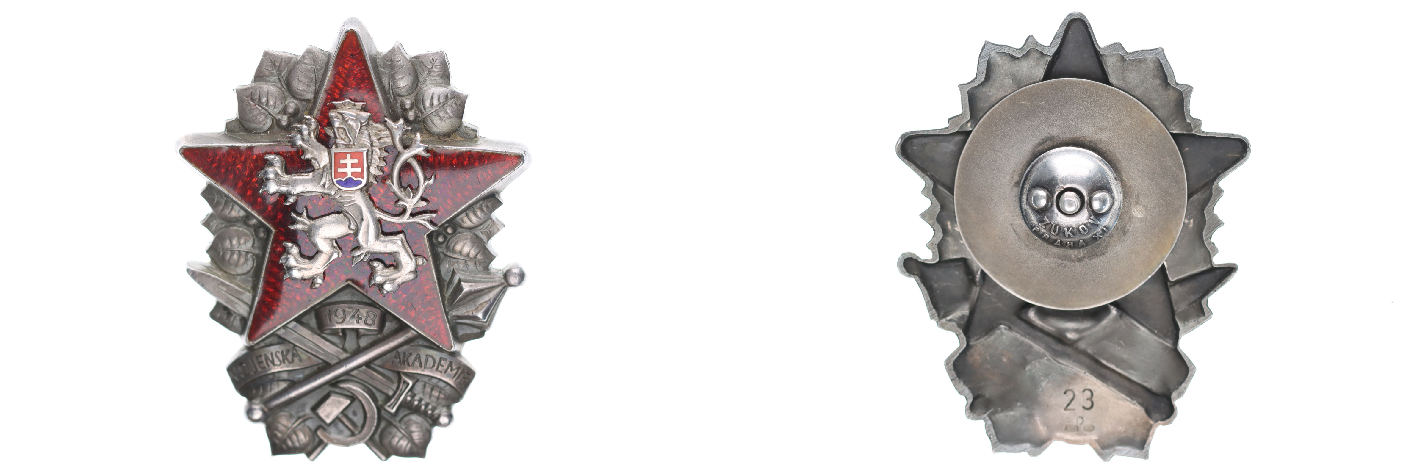 Absolv.odznak vojenské akademie 1948, č.23, odznak znač. KK, matice znač.Zukov Praha XI, Punc.900, Ag, Kr.I.4/1/1 _šroub s maticí a podložkou