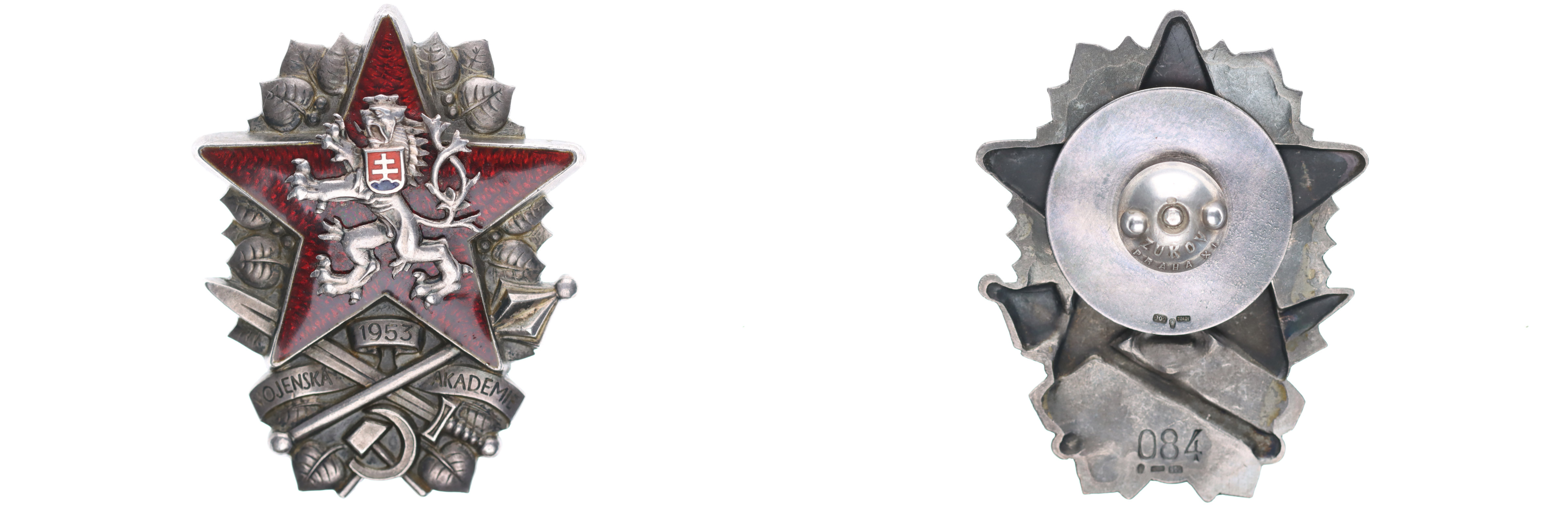 Absolv.odznak vojenské akademie 1953, č.084 znač.Zukov Praha XI, Punc.900, Ag, Kr.I.4/3/1 _šroub s maticí a podložkou