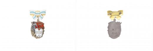 Řád mateřské slávy - I.třída, čísl.: 323529, Ag nepunc., znač.Monětnyj dvor (1944), s připán.závěsem - odznak typu 4, závěs var.B, smalty na odznaku i závěsu, Barac.1038, Herf.2.12.1