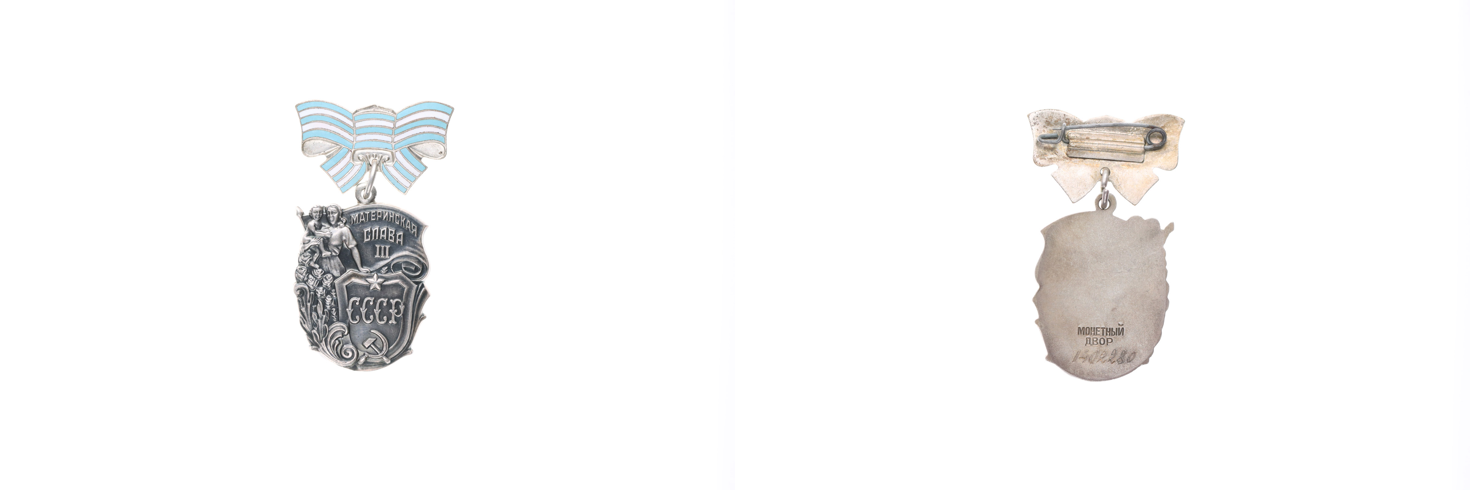 Řád mateřské slávy - III.třída, čísl.: 1402280, Ag nepunc., znač.Monětnyj dvor (1944), s připín.závěsem - odznak typu 2, var.3 závěs var.B, smalty na závěsu, Barac.1042, Herf.2.12.3