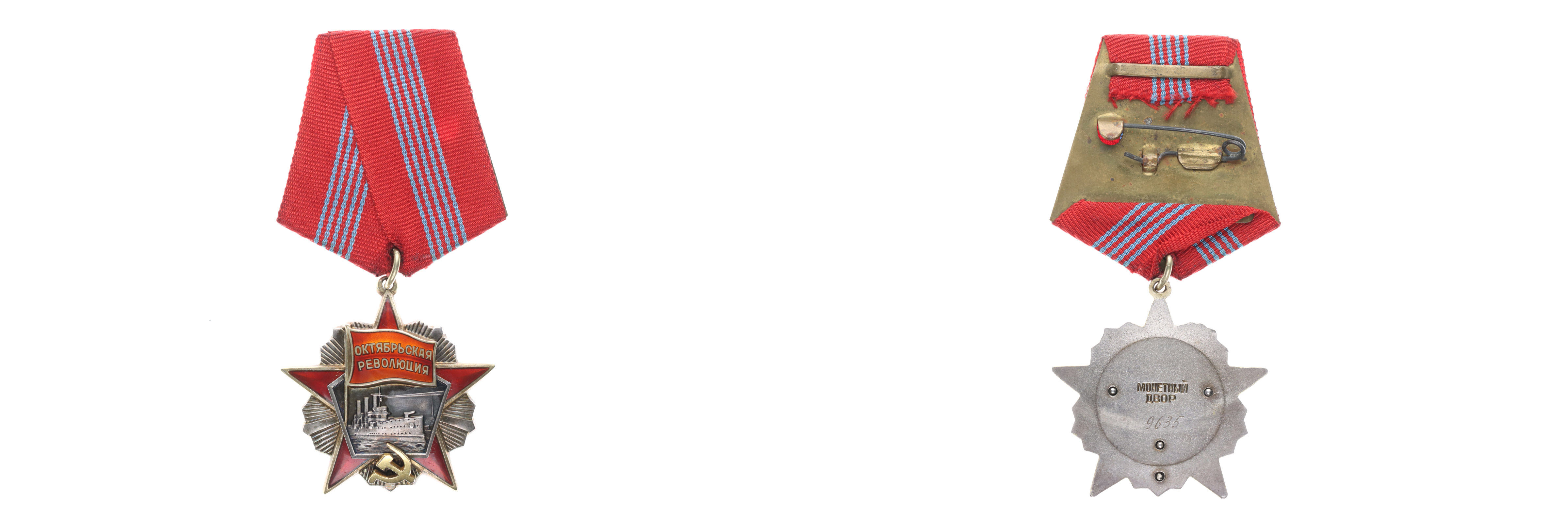 Řád říjnové revoluce, čís.9635, Smaltov. Ag nepuncov., na rev.znač. Monětnyj dvor, Herf.2.5_orig.stuha