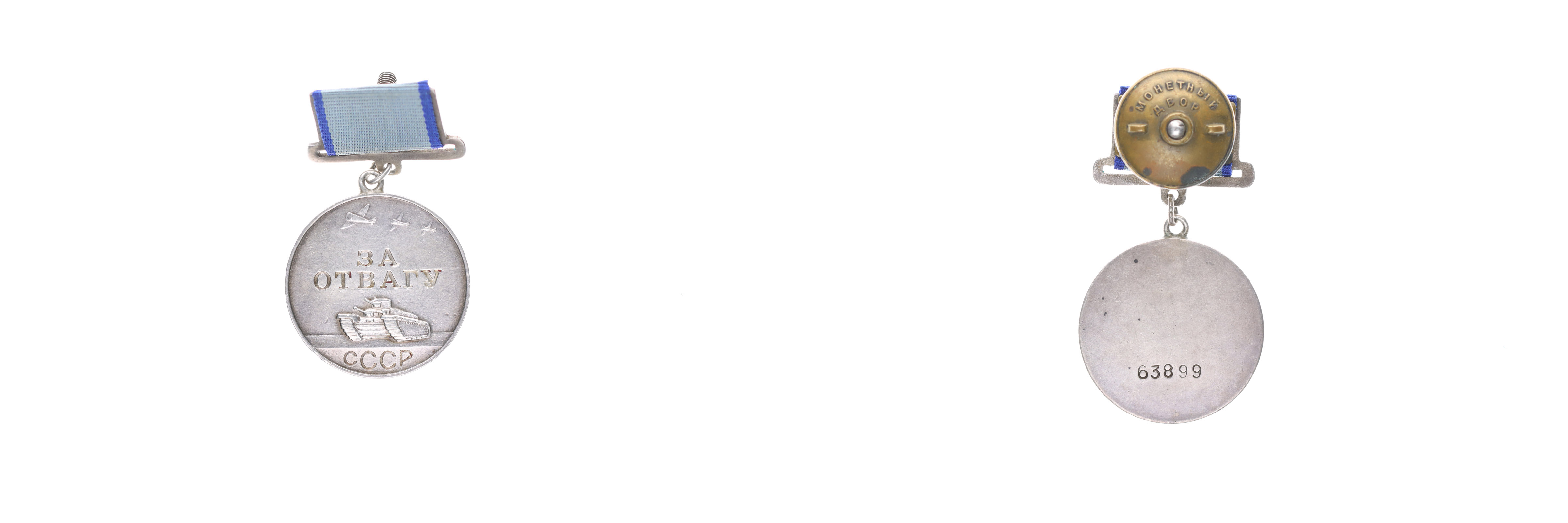 Medaile za odvahu, typ 1, var.3, čísl. 63899 nepunc.Ag 925, Barac.876, Herf.3.14.1 šroubov.závěs s maticí_modrá stužka