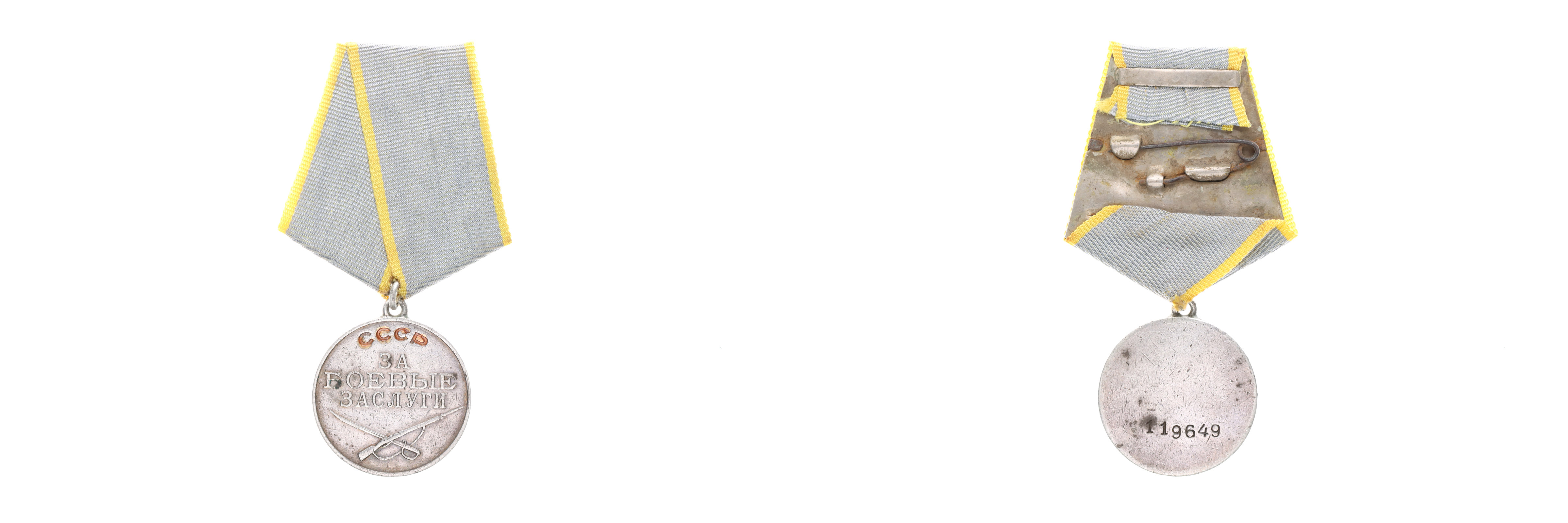 Medaile za bojové zásluhy, typ 1, var.3, čísl. 119649, Nepuncov. Ag 925, Barac.882, Herf.3.15.1, _pětiúhelníková stuha (původně na závěsu)
