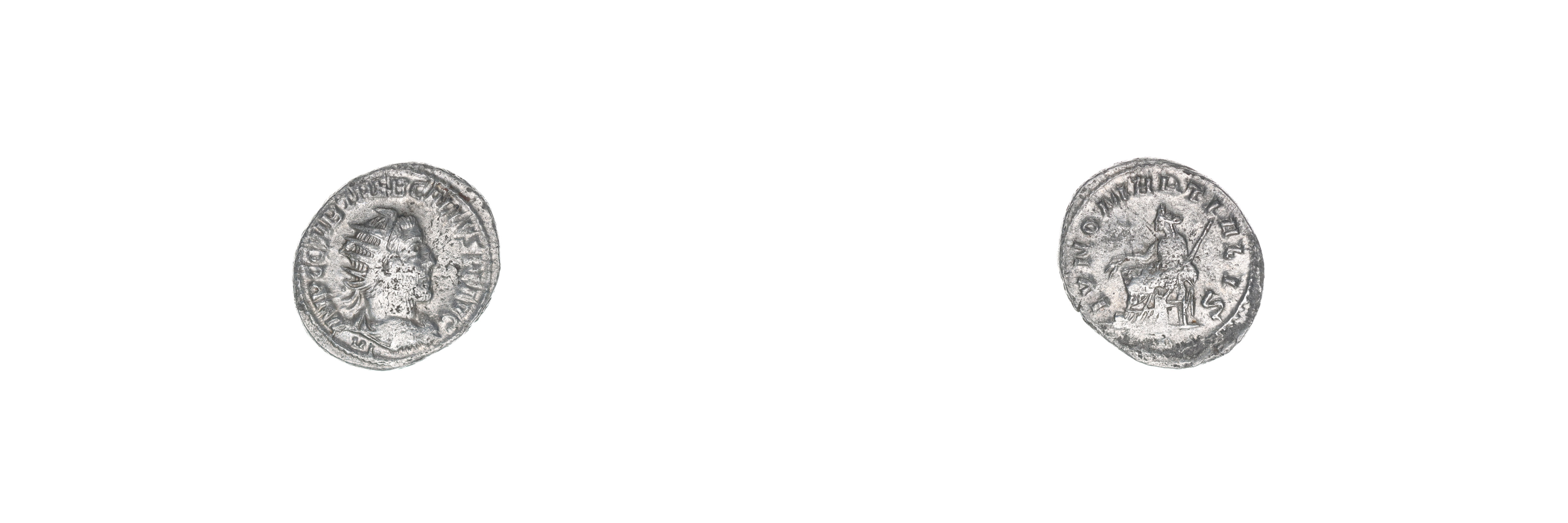 AR antoninianus, Rv:"IVNO MARTIALIS" sedící Juno zleva s klasem a kopím, S.2684pod., C.40pod., K.7