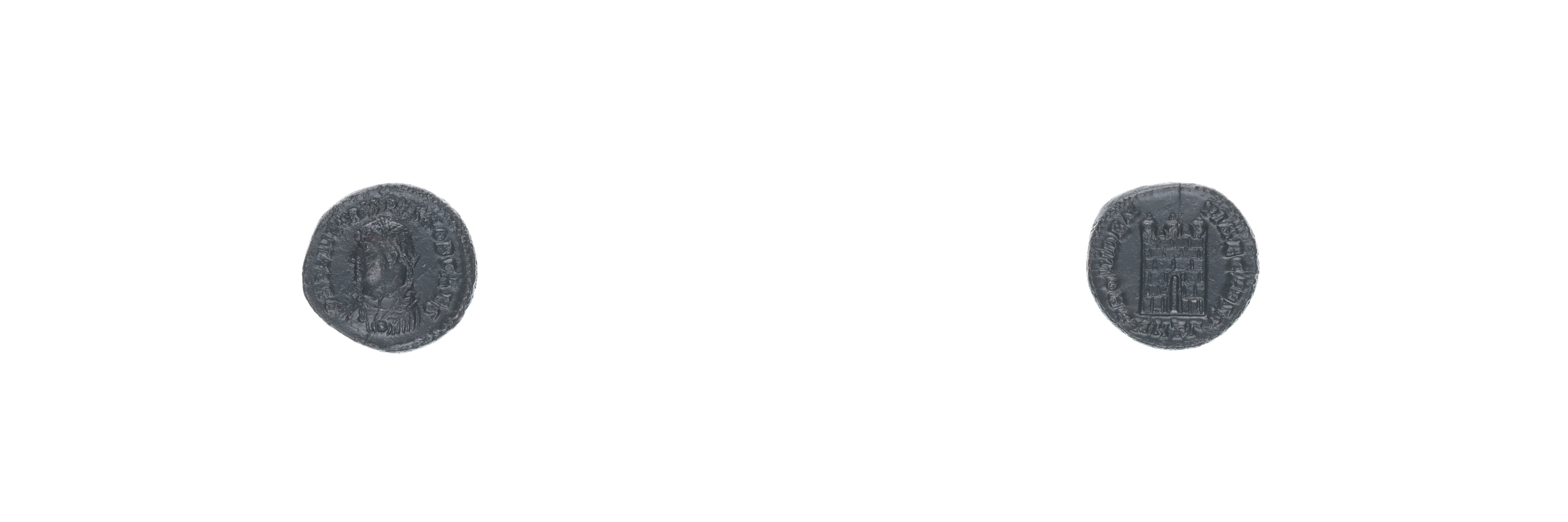 AE3, Rv:"PRROVIDENTIAE CAESS", táborová brána se dvěma věžemi, S.3823, C.115, Kamp.142.28.2