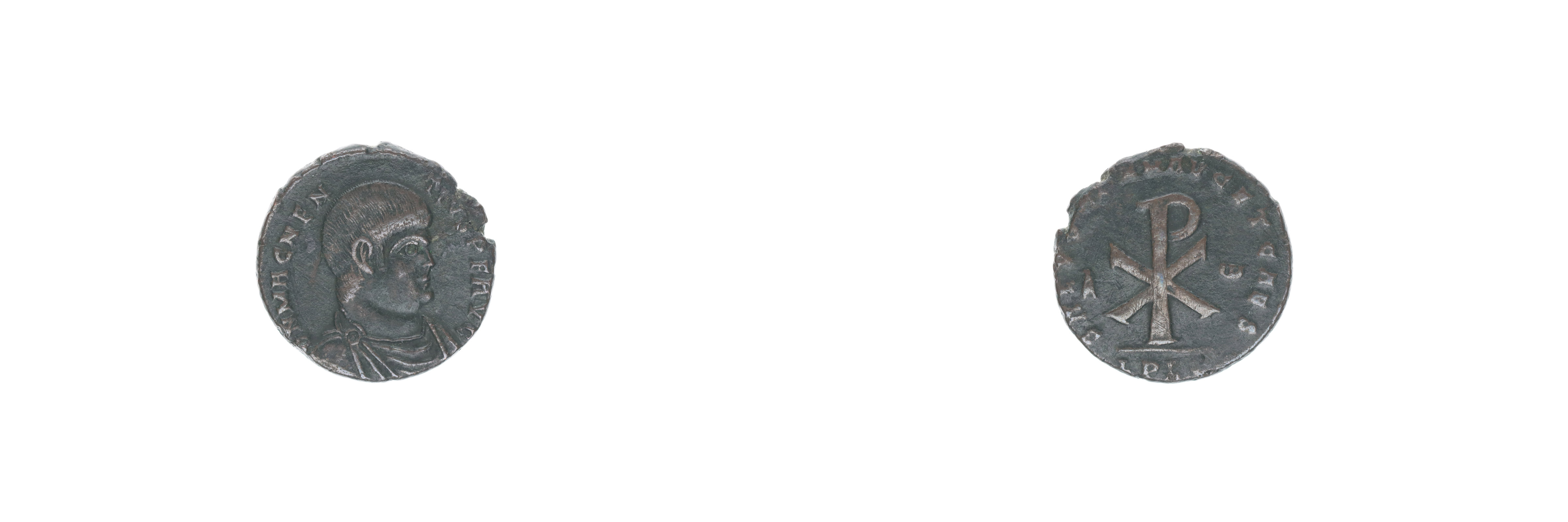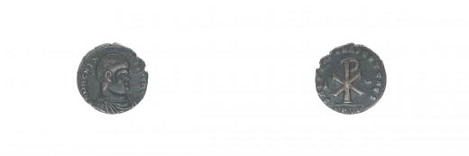 AE 2 Centenionalis, Rev.:"SALVS DD.NN.AVG.ET.CAES.", táborový christogram, S.3917, C.30_č.ned. R!