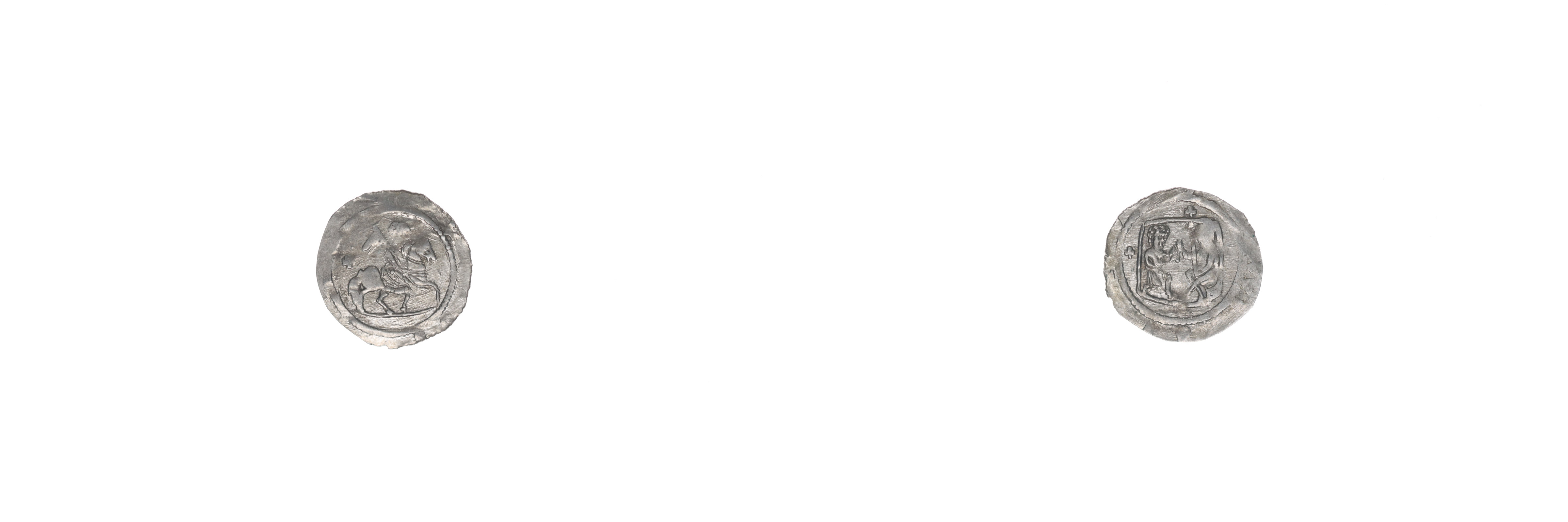Denár, Ca.583a, F.XVII/1, za jezdcem "+"_opisy tém.nevyraženy