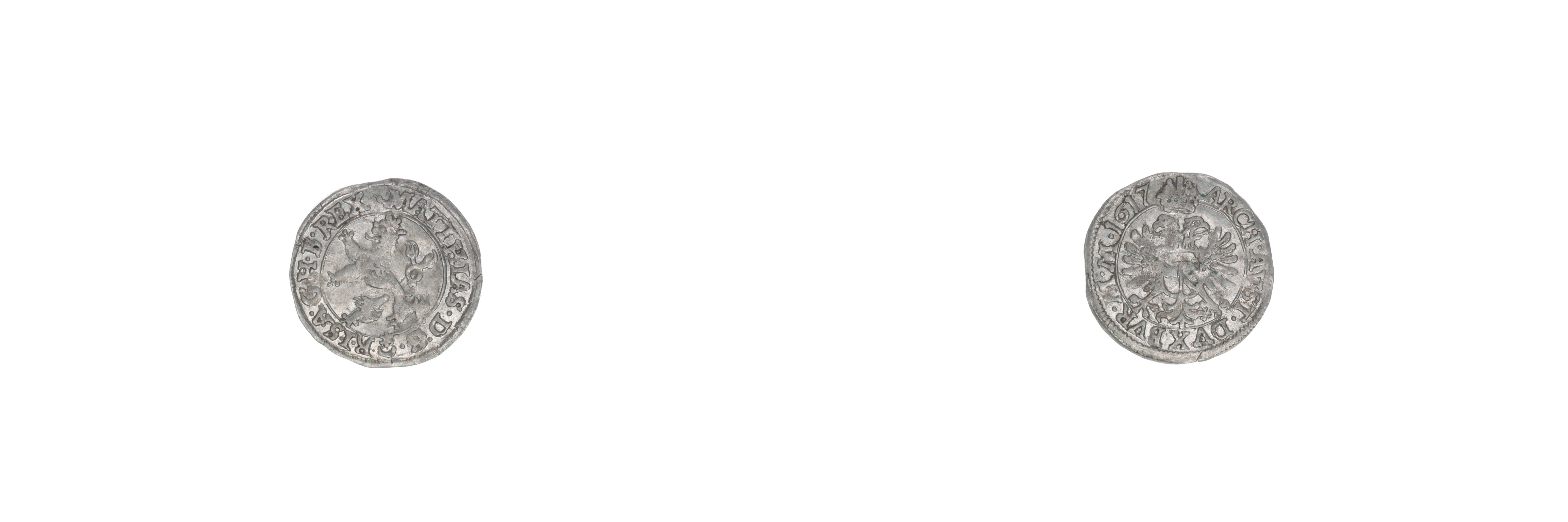 Bílý groš 1617, Praha-Hübmer, J.2b, MKČ.514 var.: přední tlapy zasahují do vnitřního kruhu