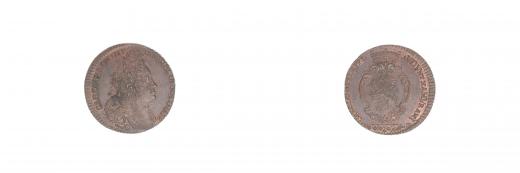 P.L.II.Roëttiers - na holdování v Namuru 1717 Poprsí zprava, opis / lev zleva v ozdobné kartuši, opis Sign., Bronz 30 mm, 9,92 g, Nov. XI/V-1a, Mo.1492, LG.XV/714