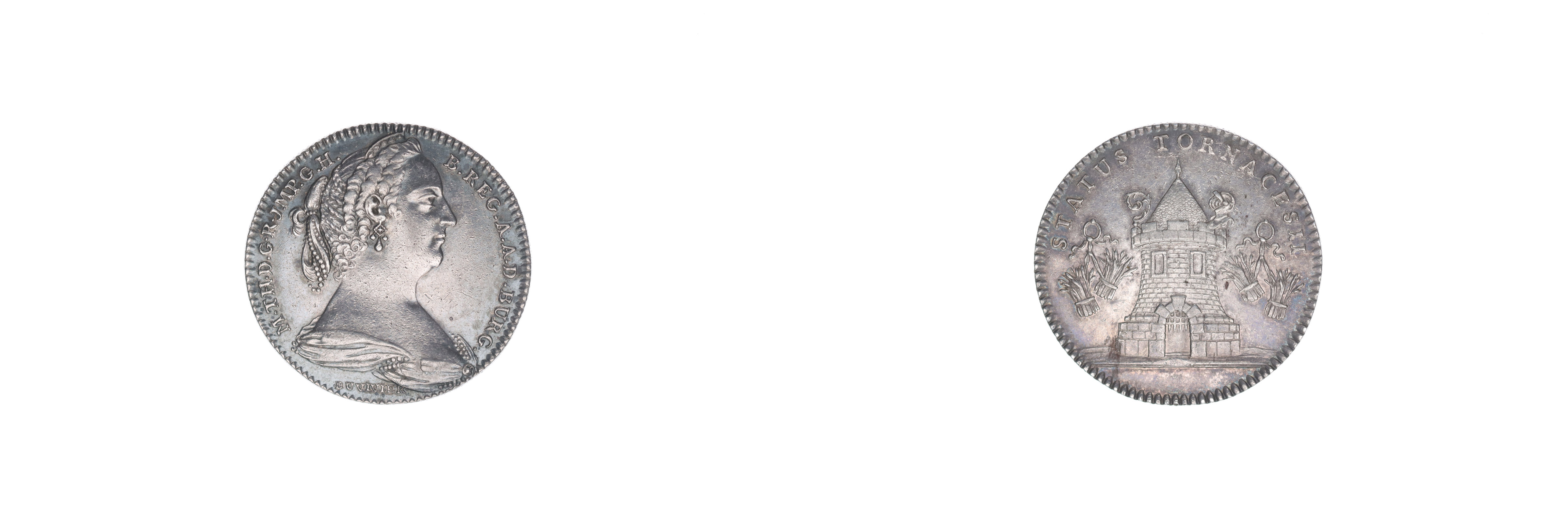 Duvivier - medaile města Tournay, b.l. (cca 1745) Portrét zprava, opis / věž, opis STATUS TORMACESII Sign., Ag 31 mm, 12.60 g, Mo.1815_R!