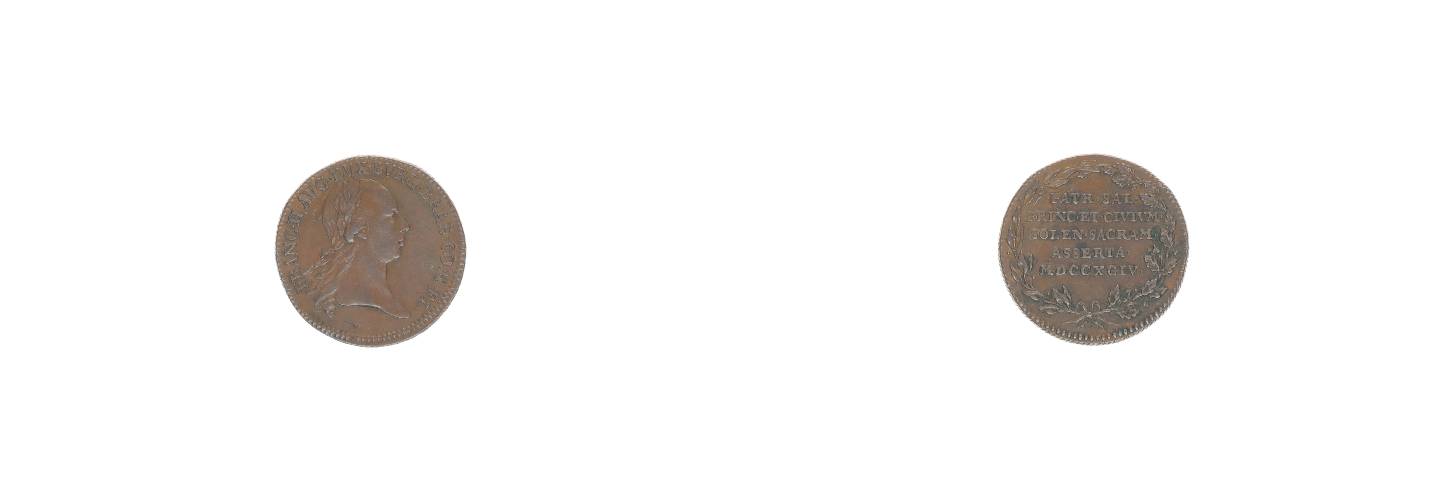 Jeton na holdování v Belgii (Brusel), 1794 Poprsí zprava, opis / 5řádk.text ve věnci Bronz 22 mm, 3.83 g, Nov.XVII/M-6c, LG.XIV/1219
