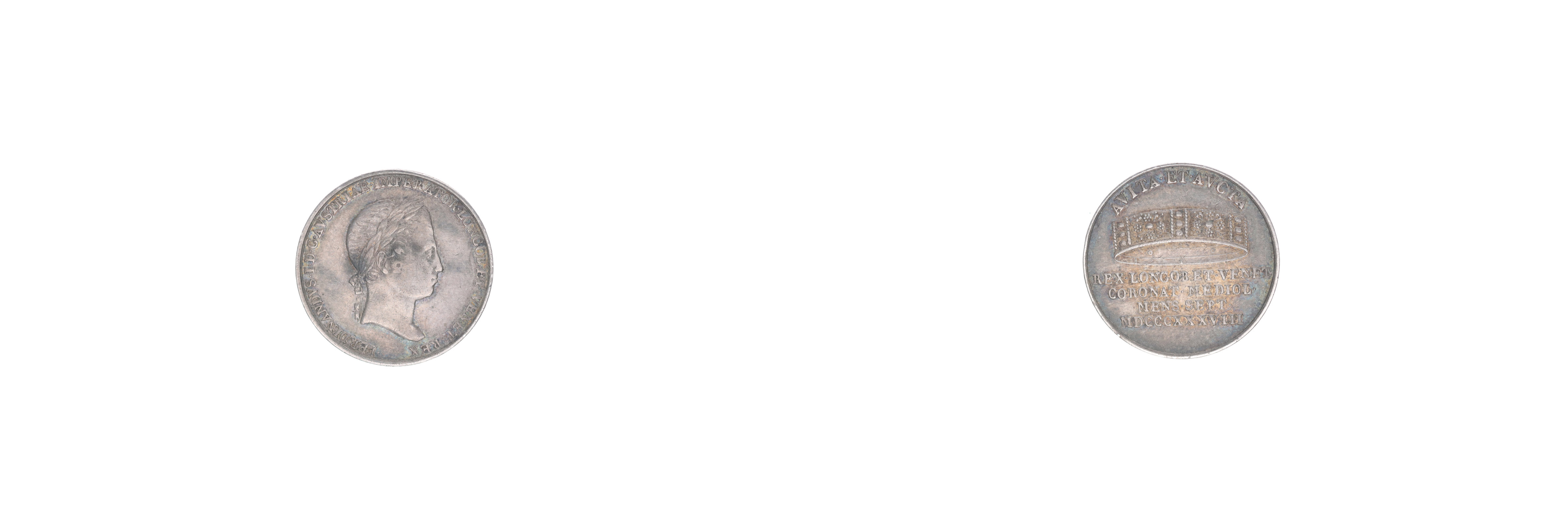 Větší peníz na korunovaci v Miláně, 6.září 1838 Portrét, opis / lombardská koruna, nápis, Nesign., Nepunc., Ag 21 mm, 5.45 g, Nov.XVIII/G-8b, P.6/18, Mo.2585, Ho.3641
