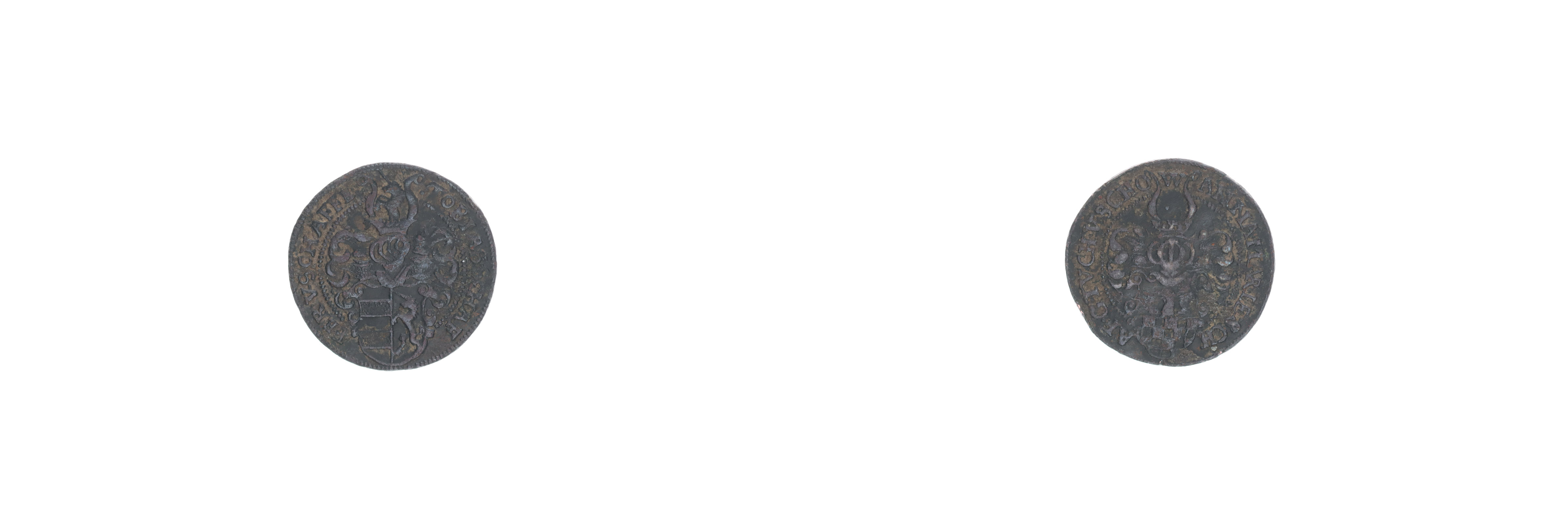 Žeton svatební b.l. (cca 1580) - horní účetní v Kutné Hoře s manželkou Annou Marií, korunov.znak, opis / znak, opis Cu 22.5 mm, MN.375, Pol.199, Pok.B.203/2_RR!