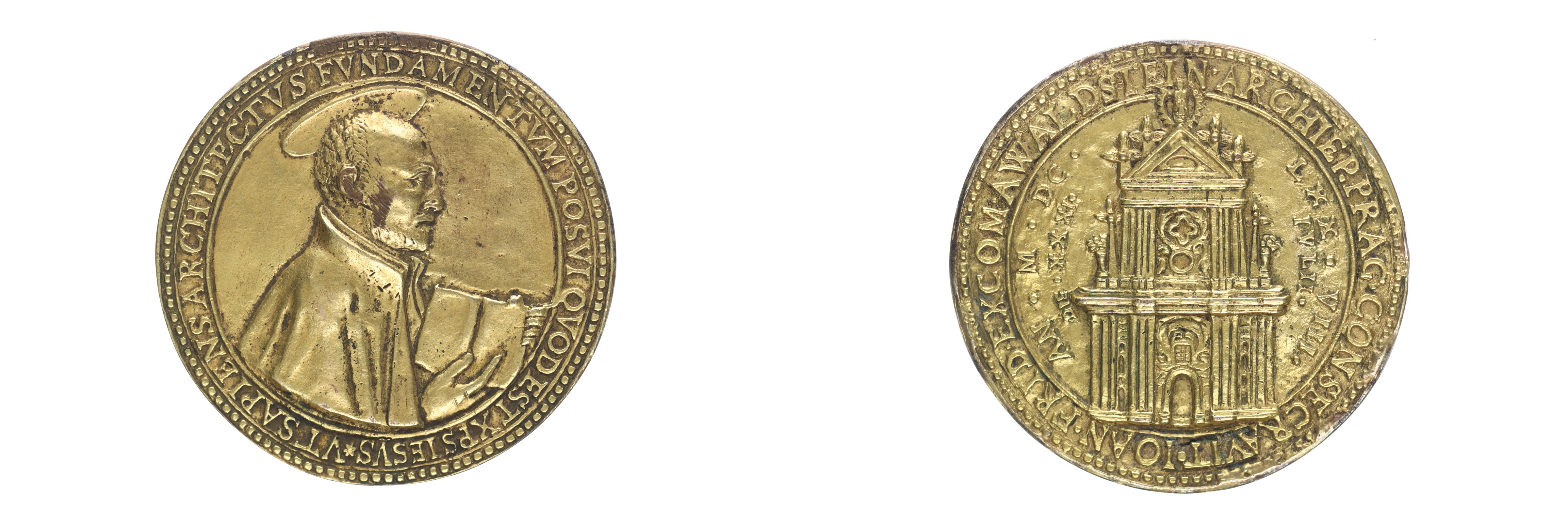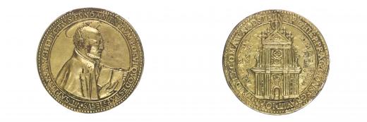Poprsí svatého Ignáce zprava, latinský opis / průčelí chrámu, opisy Na vysvěcení 31.VII.1678, Pozlac.litá něď 61 mm, Přib.415, Gross.126 _R!