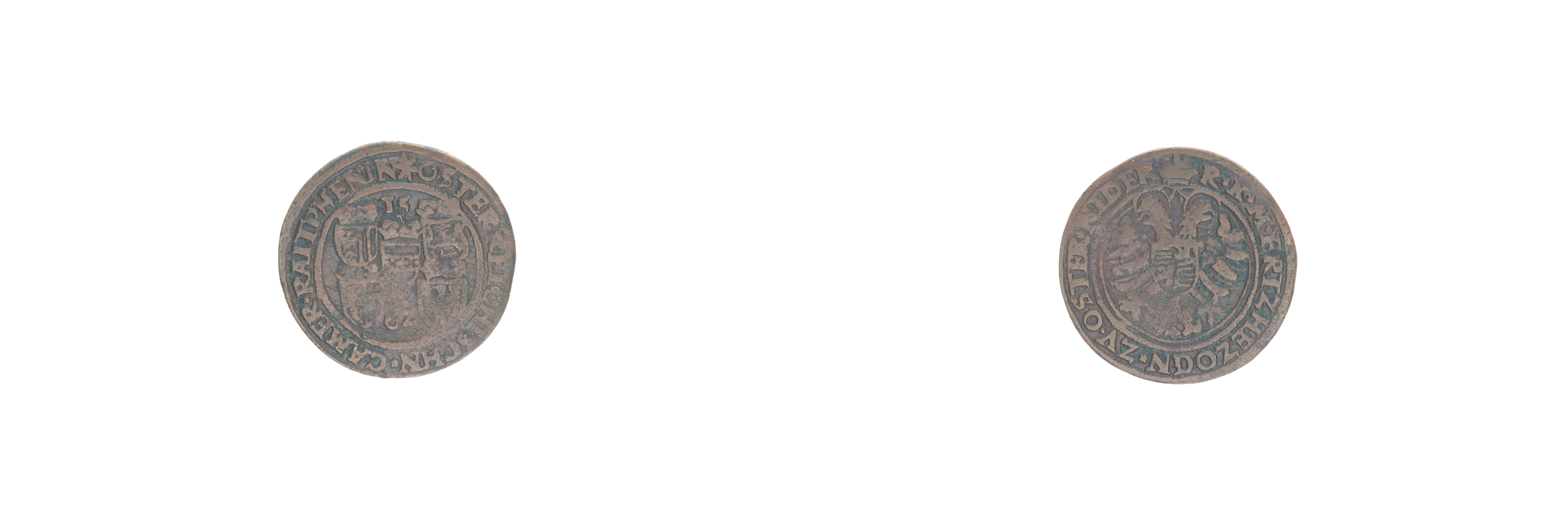 Početní fenik 1562 pro Dolní Rakousko, mincm.A.Hartmann pětidílný znak, opis / dvouhlavý orel, opis, Cu 25 mm, Neum.982, Prokisch.A.3/1/35 (samostatný typ)_R!