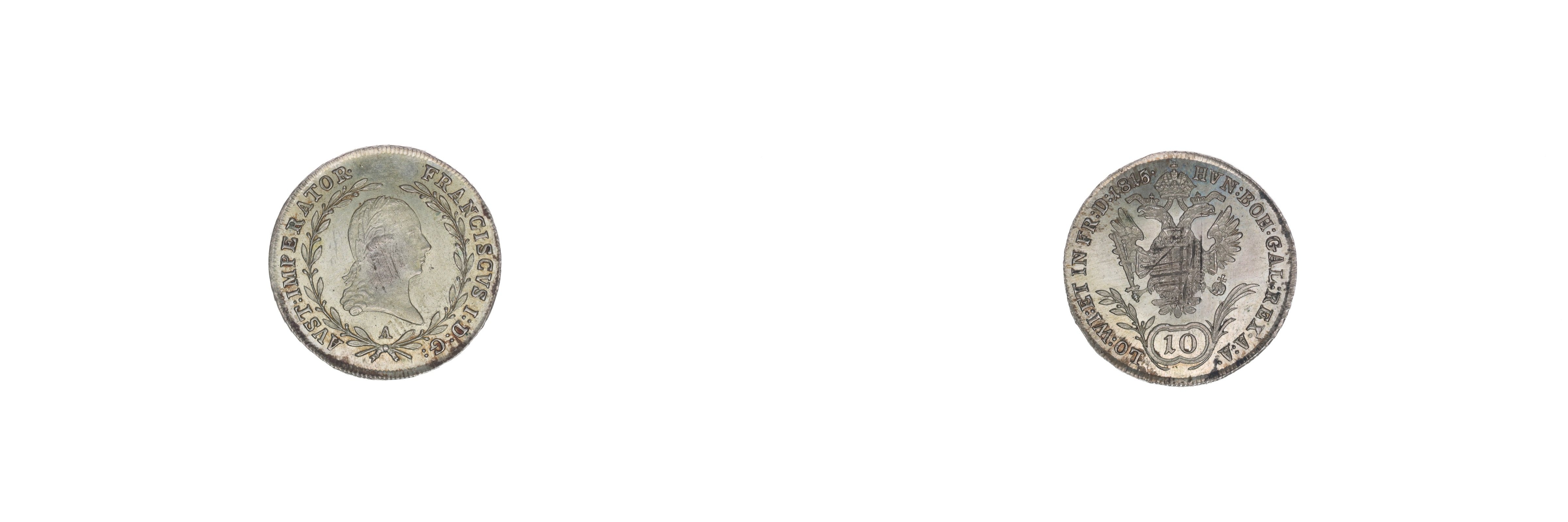 10 Krejcar 1815 A, Her.849_dr.just. v av., just. v rev.