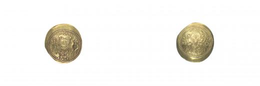 Histameon nomisma (konkávní), Poprsí Krista čelně / stojící císař drží labarum a globus, opis, Ra.2033, 4.38 g_R!