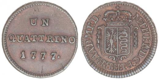 Cu Quattrino 1777, Milán, N.210b, Her.1823, Eyp.506/2, Fr.1914_R!