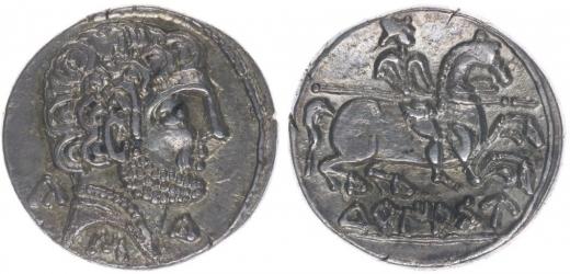 AR Drachma, portrét zprava / jezdec na koni s kopím zprava (španělská iberokeltská mince), SG.30_R!
