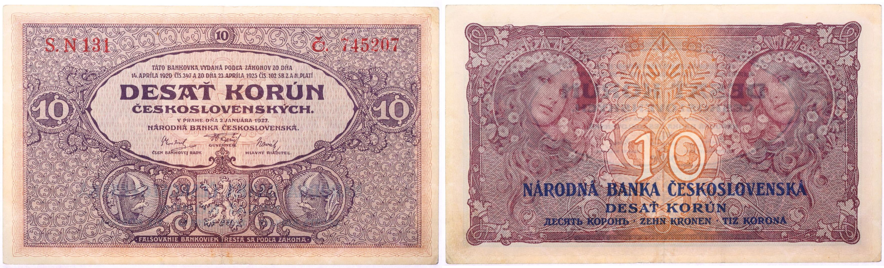 10 Kč 1927, série N131, B.22e, Hejz.22b_"neperf."