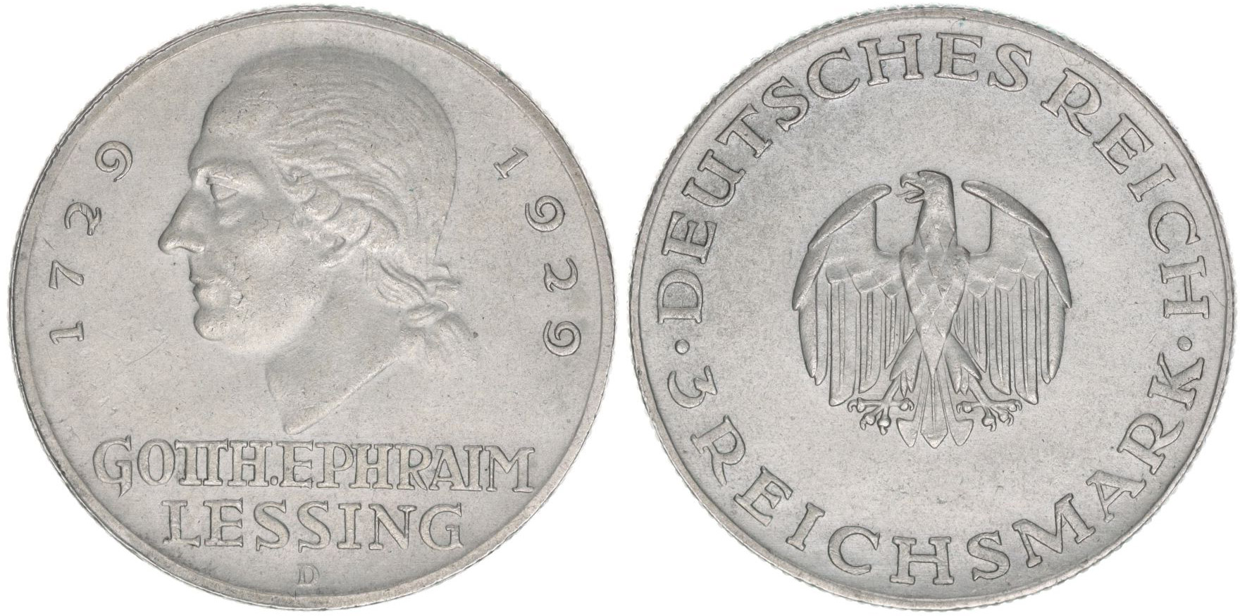 3 Marka 1929 D - Lessing, KM.60, J.335