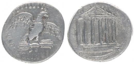 AR denár, sedící orel na blesku zprava / sloupový chrám Craw.487/2b, Ves.1393