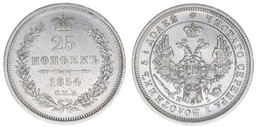 25 Kopějka 1854 SPB-NI, Bitkin.2.310, Uzd.1714 skup.XVIII-B/b