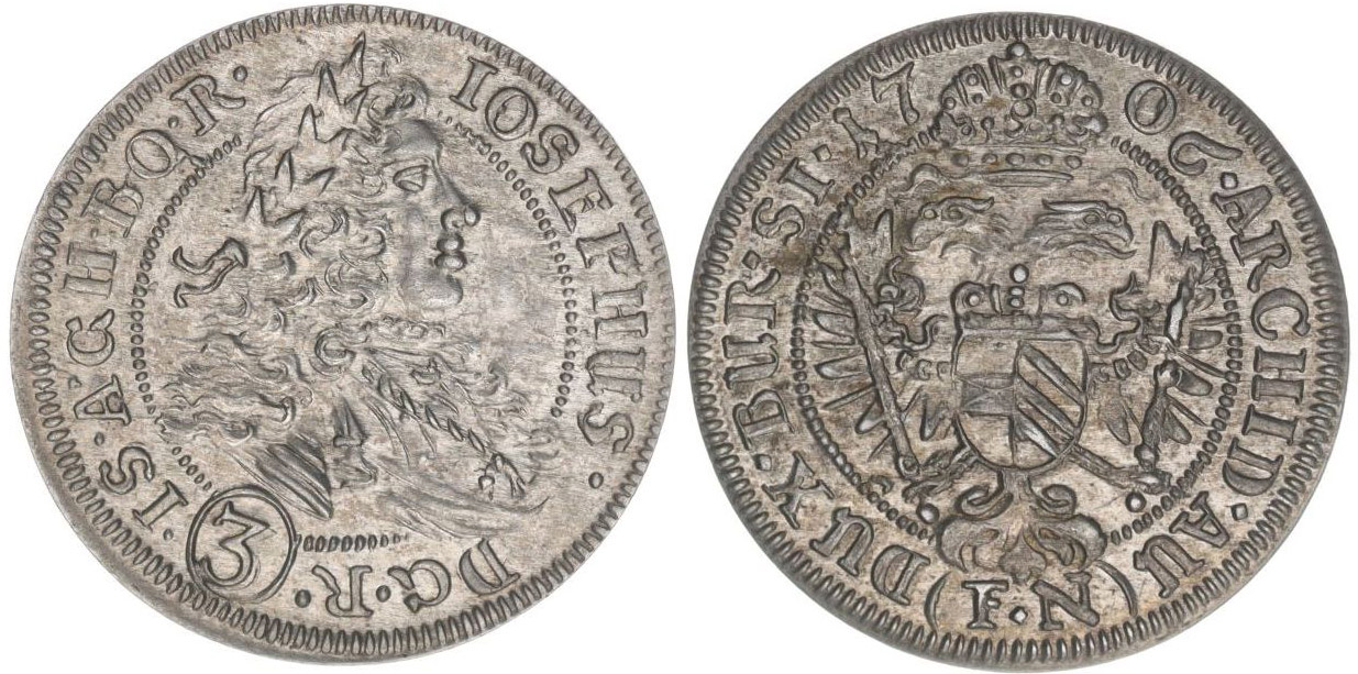 3 Krejcar 1706, Vratislav-Nowak, MKČ.1760, Her.215v opis D G.R. - .I S, AU - DUX.