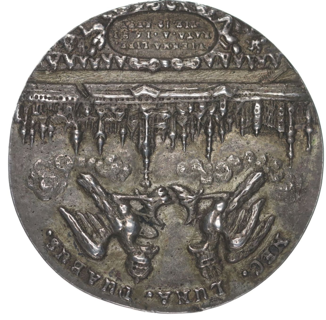Nesign. - medaile na vítězství nad Turky 12.9.1683 Pohled na město převýšený dvěma korunovanými orly, 3řádk.nápis v úseči, opis, Ag (?) 46,5 mm, 30,37 g_jednostr.
