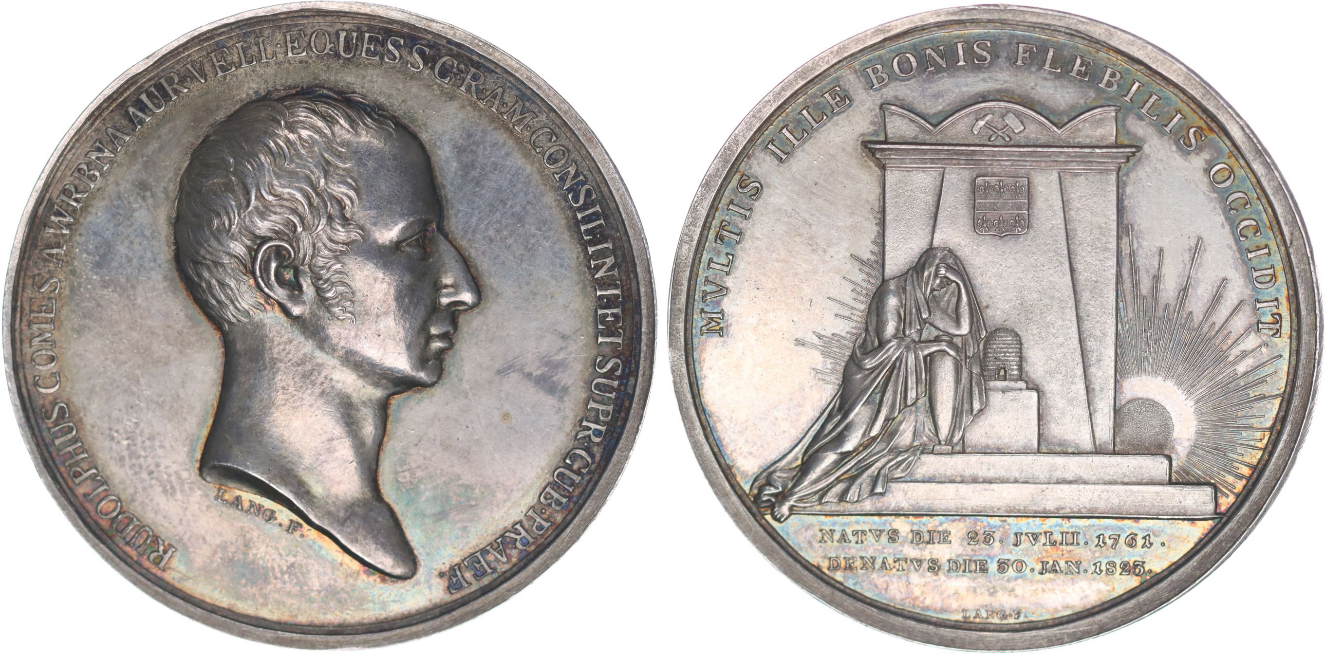 Lang. F. - úmrtní medaile, 1823 Poprsí zprava, opis / truchlící anděl u náhrobku, 2řádk.nápis, opis Sign., Ag 47 mm, 35,10 g, MN.653, Do.4052