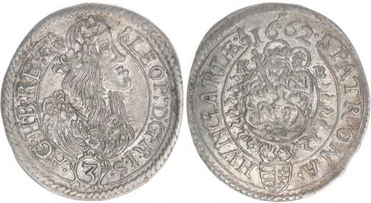 3 Krejcar 1662 KB, Nech.1205, Hus.1464, Her.-, Hus.1464 opis: LEOP:D:G.R.I.S.-A.G.H..._R!