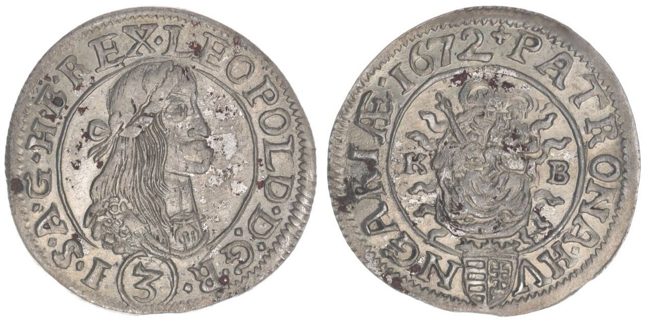3 Krejcar 1672 KB, Nech.1212, Husz.1465, Her.1584