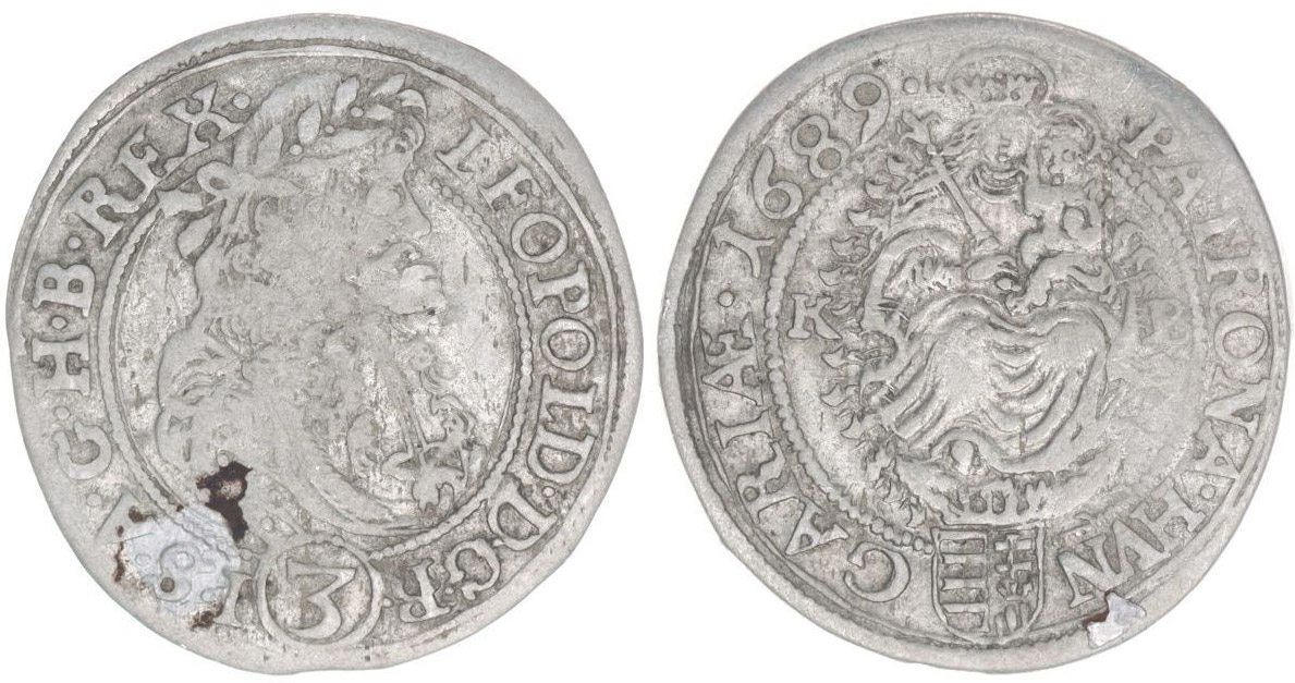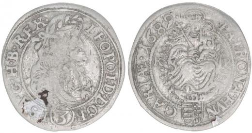 3 Krejcar 1689 KB, Nech.1230, Hus.1466, Her.1601