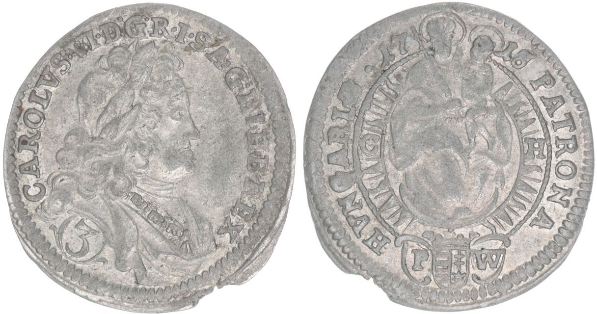 3 Krejcar 1718 C-H, Bratislava-Wödrödi, Her.844, Hus.1630, Un.662 _dr.okr. RRR!