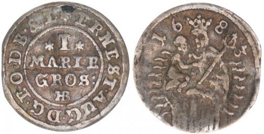 I Mariengroš 1683 HB, 4řádk.nápis, opis / madona s dítětem, vročení KMG.292_RRR!