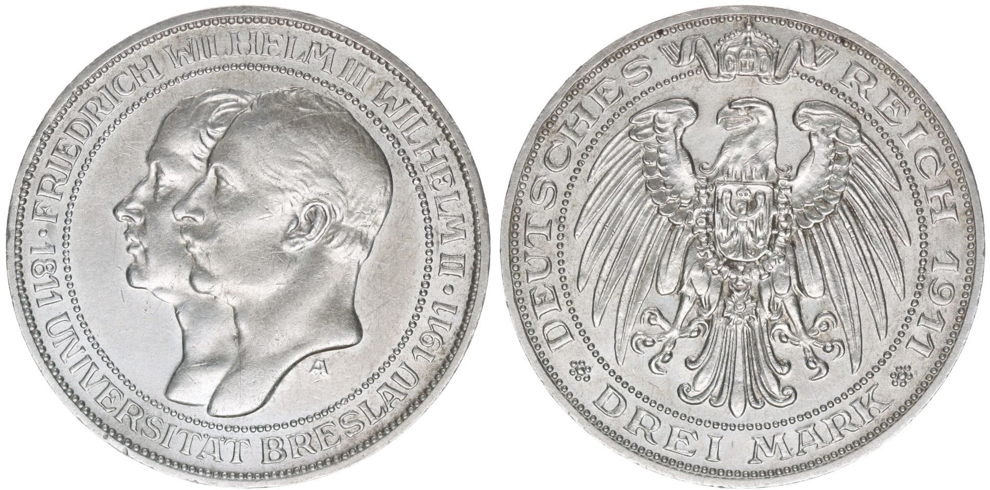 3 Marka 1911 A - universita Vratislav, KM.531, J.108