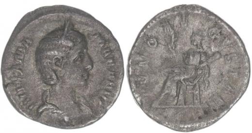 AR Denár, Rv:"IVNO.AVGVSTAE", sedící Juno drží květinu a roh hojnosti, S.2209, C.32, K.64.6