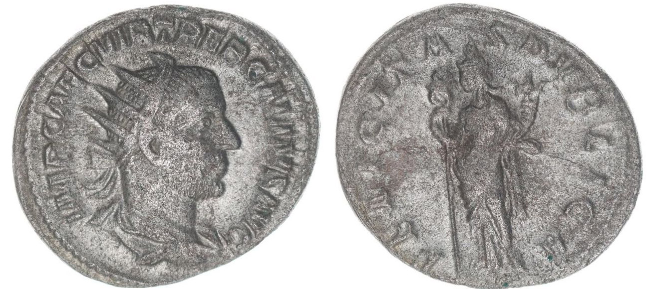 AR antoninianus, Rv:"FELICITAS PVBLICA", stojící Felicitas zleva S.2681, C.37, K.83.7, RIC.33