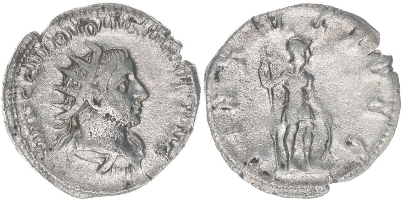 AR antoninianus, Rv:"VIRTVS.AVGG.", stojící Virtus zprava, S.2732, C.133, K.84.38, RIC.186f