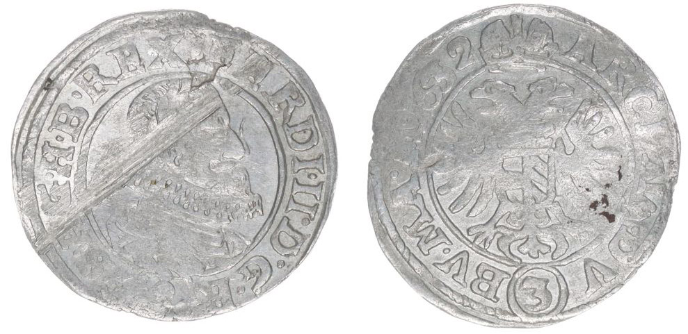 3 Krejcar 1632, Praha-Schuster, J.31a2, MKČ.761, Her.1155 _škrce v av.