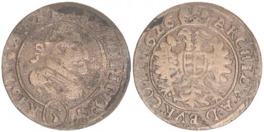 Cu 3 Krejcar 1626, Hradec u Opavy - Zwirner a Raschke ( falešné mincování ), MKČ.1138