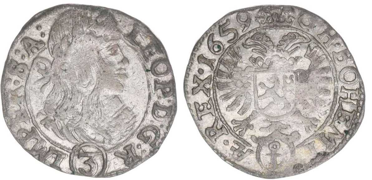 3 Krejcar 1659, Praha-Margalík, Nech.179, MKČ.1418, Ja.6a