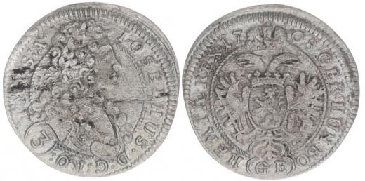3 Krejcar 1708, Praha-Egerer, J.6b, MKČ.1721