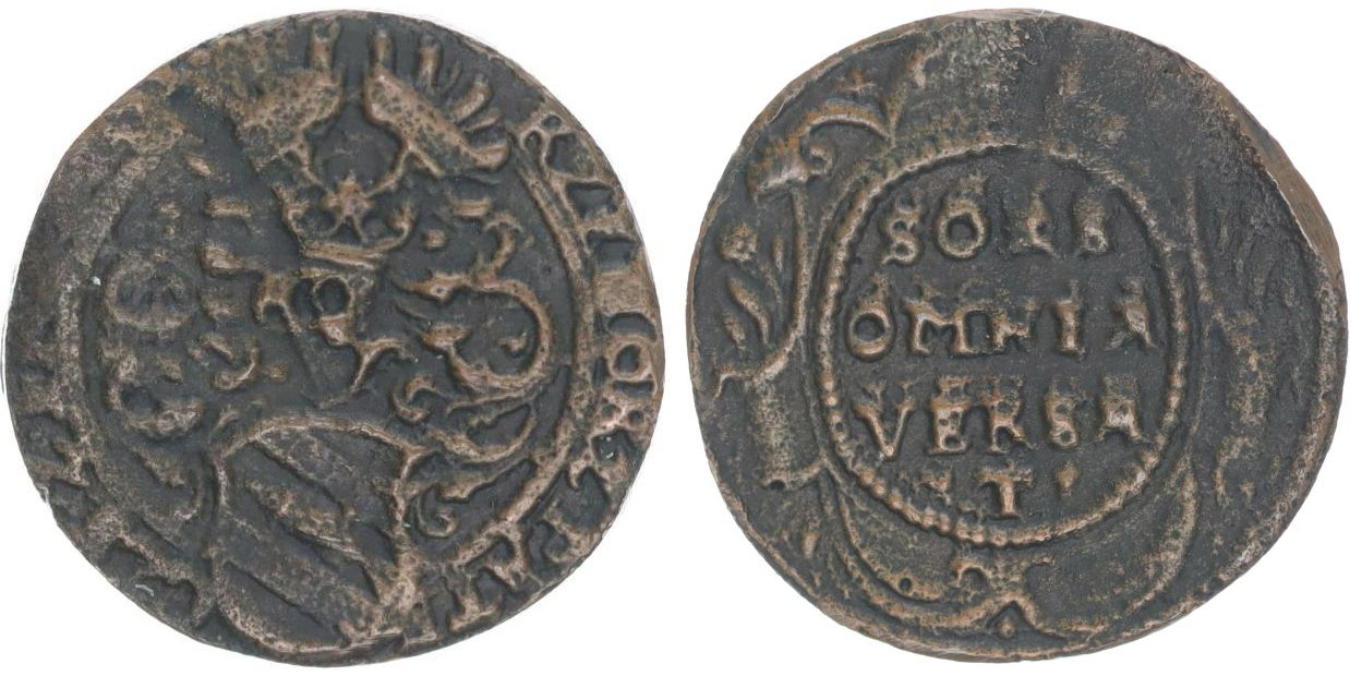 Početní peníz b.l., rodový znak, opis / 4řádk.nápis Cu 21 mm, Pol.nezná, Do.3634, Kill.5095, Prok.B.165/1_R!
