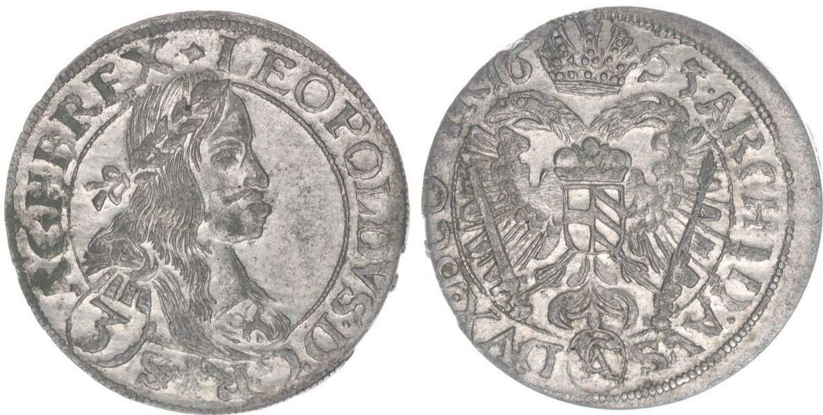 3 Krejcar 1665, Vídeň-Cetto, Nech.1963, Her.1312, typ bez stuh (jako u ražby 1666)_R!
