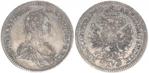 XV Krejcar 1749, Hall, Nový.32, Her.1095, Eyp.1095, Fr.636 _dr.just. v av., dr.ned. v rev. R!
