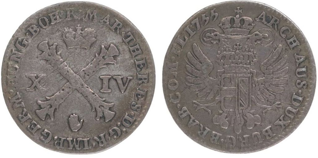 XIV Liard 1755, Antverpy, Nov.164_R!