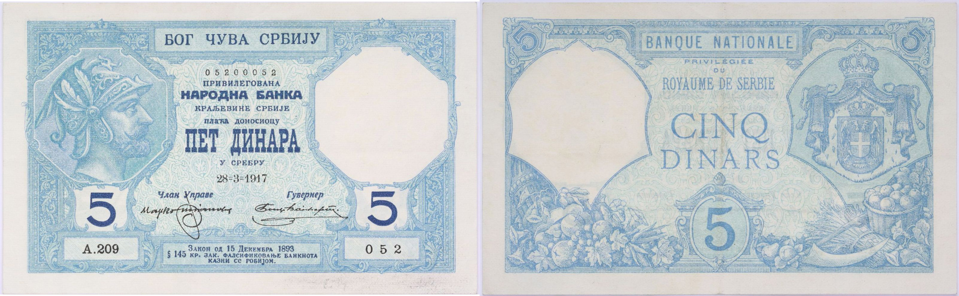 5 Dinárů 28.3.1917, sér.A209, P.14a