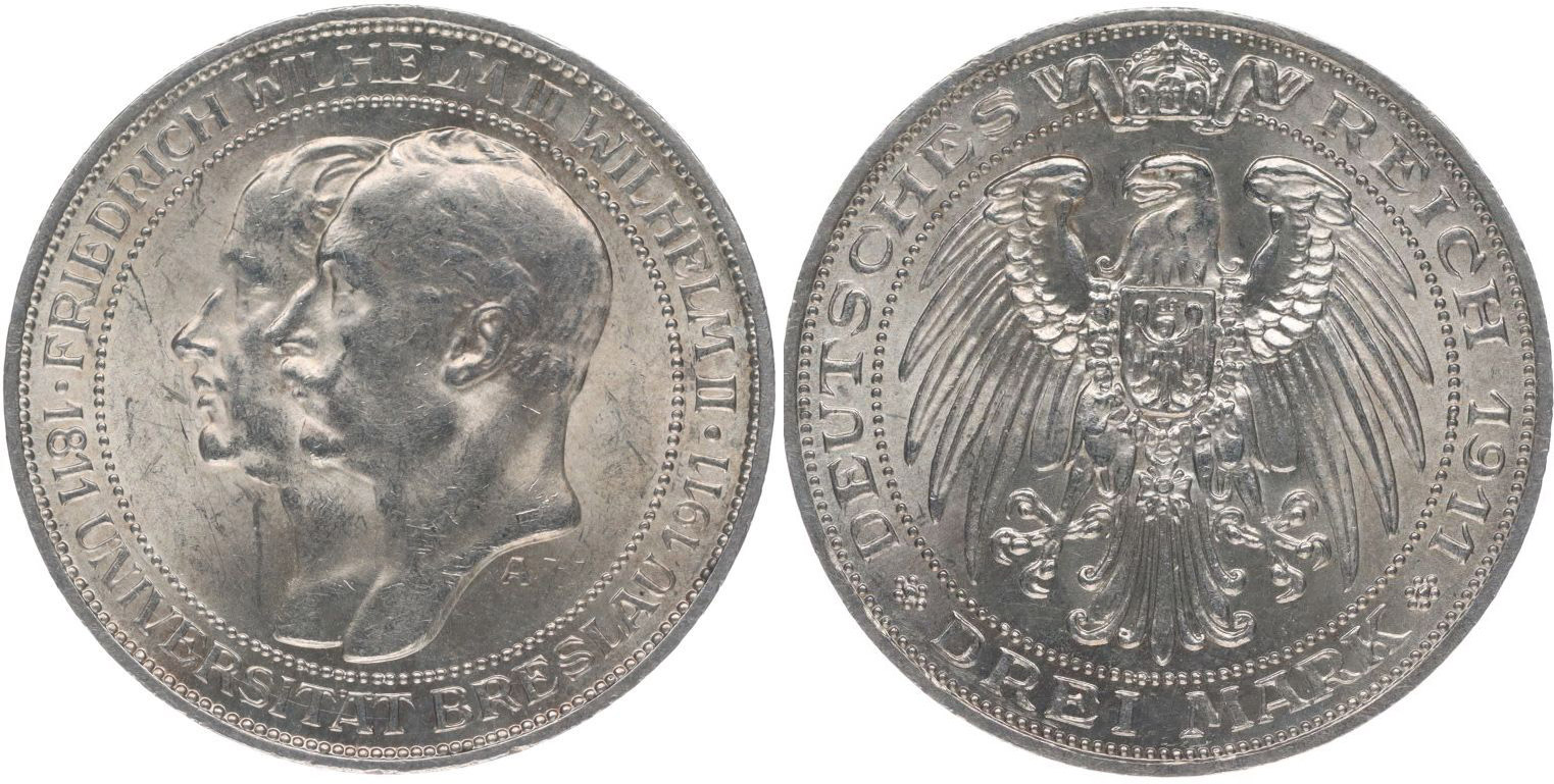 3 Marka 1911 A - universita Vratislav, KM.531, J.108