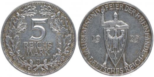 5 Marka 1925 D - 1000 let Porýní, KM.47, J.322